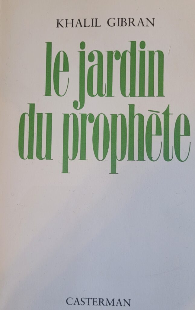 Quant au livre le jardin du prophète, on retrouve ce même prophète tout d’abord dans le jardin de ses parents et ensuite dans la cité. Ses disciples et des habitants viennent à lui pour avoir des réponses sur des thèmes universels. Ses paroles, ses réponses ne plaisent pas toujours, à nous de nous poser la question pourquoi est-ce que ça me gêne ? N’y-a-t il pas des vérités que nous ne voulons entendre, ou qu’on ne souhaite pas être mise en avant.